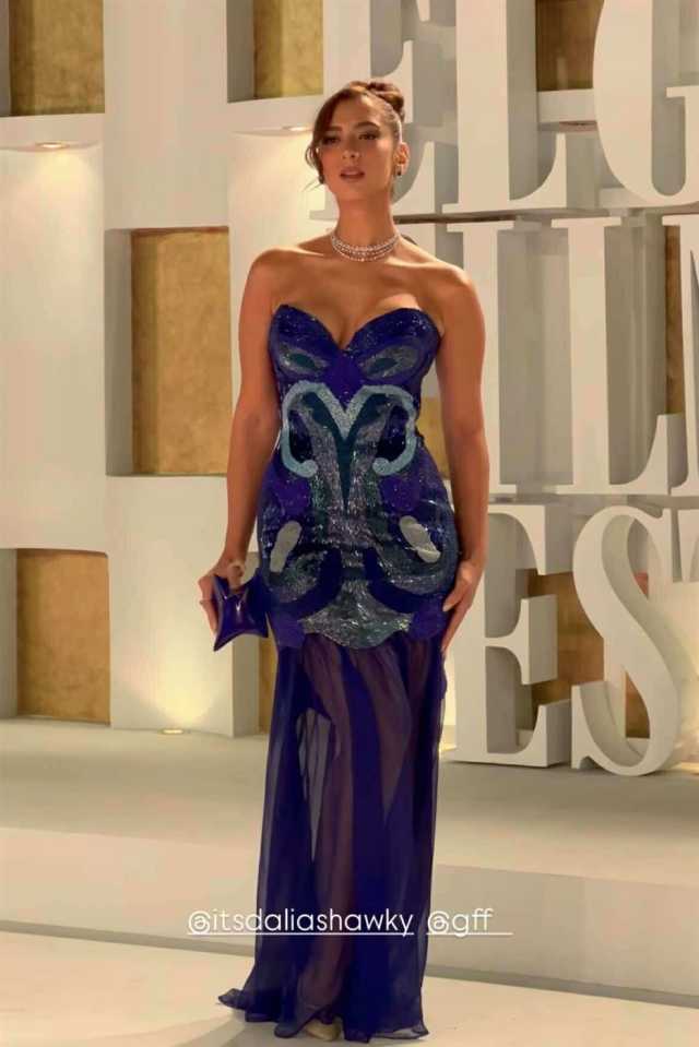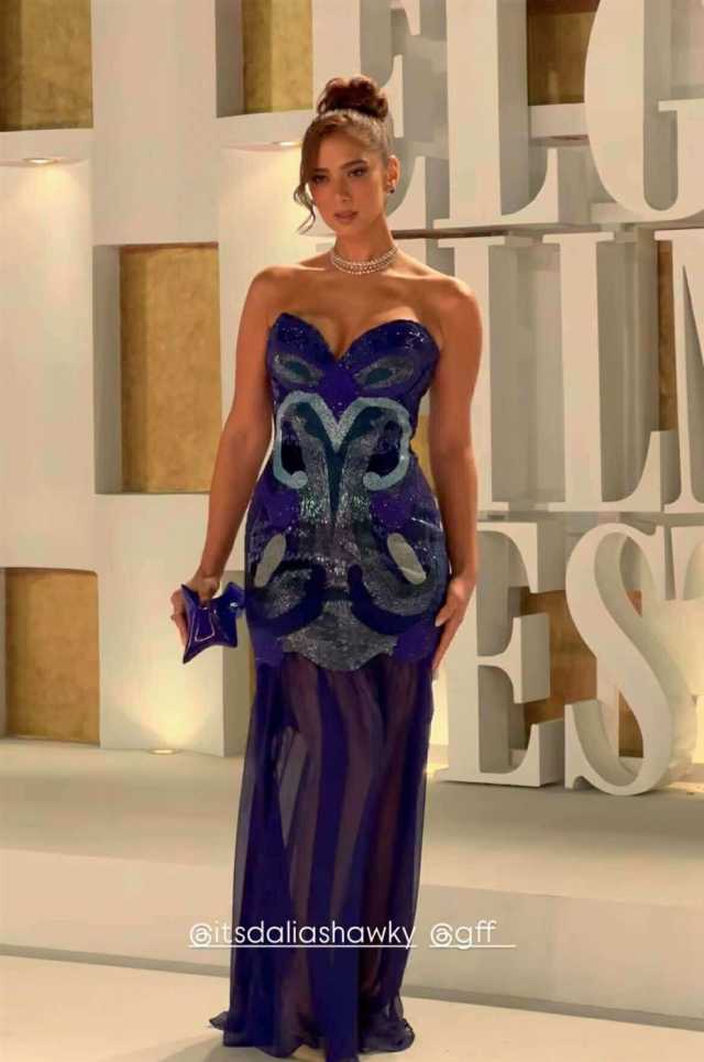 ختام مهرجان الجونة.. داليا شوقي تتألق بألوان السماء الزرقاء