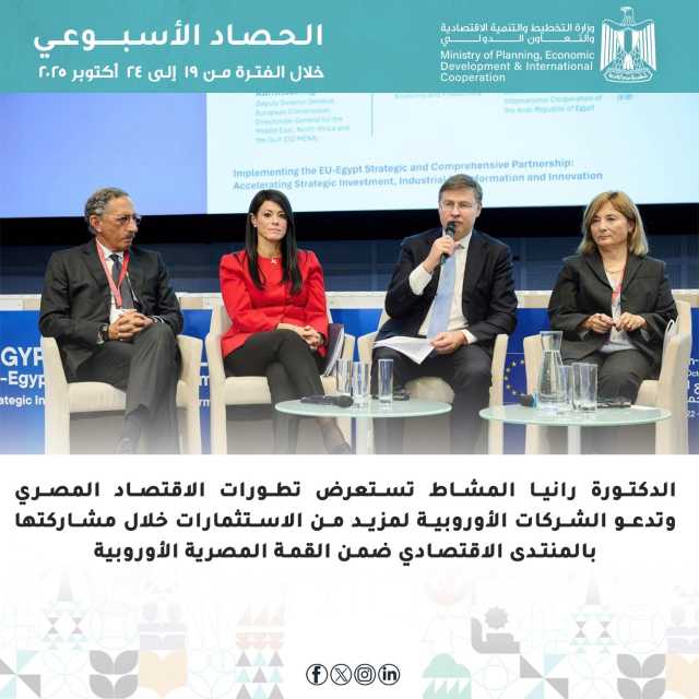 ننشر تفاصيل الحصاد الأسبوعي لوزارة التخطيط والتنمية الاقتصادية