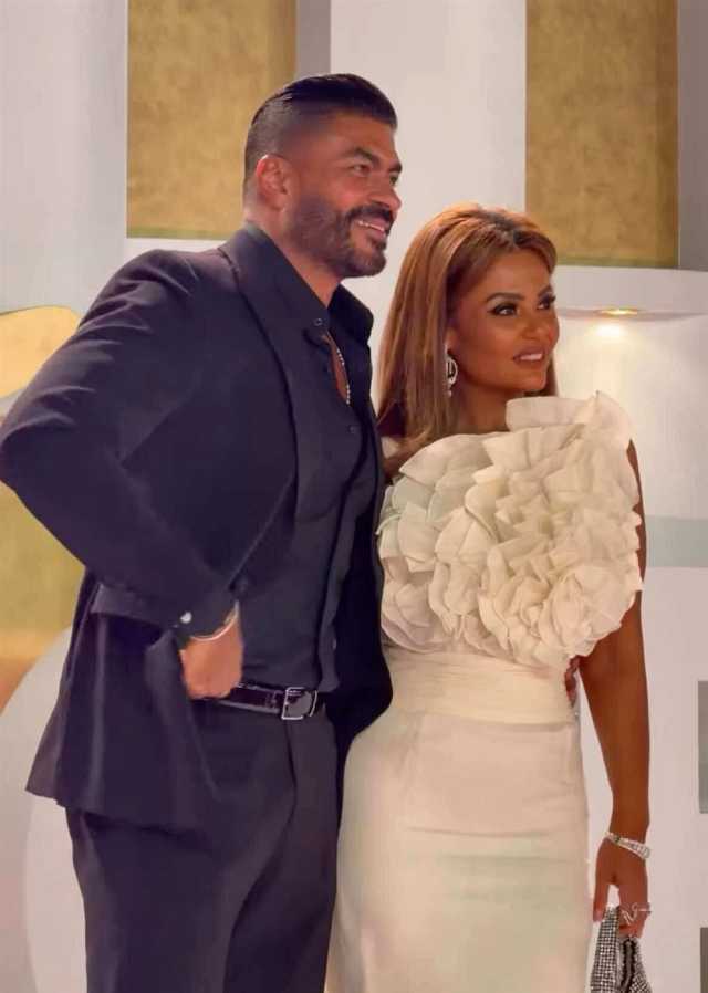 وردة في بستان الحب.. زوجة خالد سليم تتألق بالأبيض رفقته على الريد كاربت