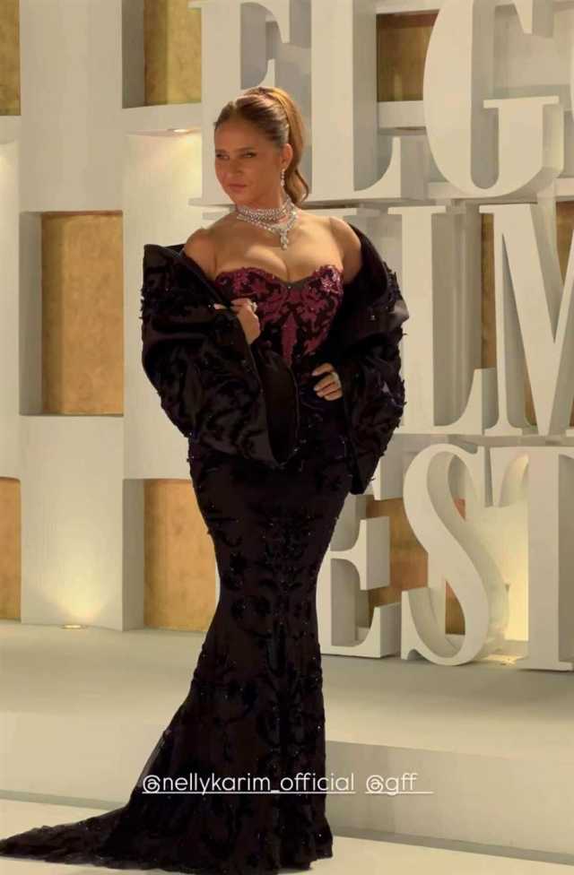 وتألقت نيللي بمجموعة من المجوهرات الماسية اللامعة، حيث ارتدت عقدًا متعدد الطبقات وأقراطًا متدلية أضافت بريقًا خاصًا يكمّل فخامة الفستان. كما نسّقت معه وشاحًا أو جاكيت سهرة داكن اللون ليمنح الإطلالة لمسة فخمة ومتوازنة.