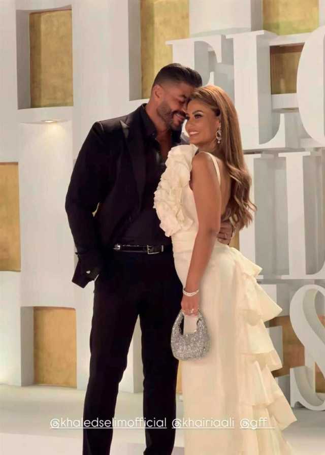 جسّد الثنائي خالد سليم وزوجته مثالًا على الانسجام الهادئ، حيث ارتدى خالد بدلة سوداء أنيقة، فيما تألقت زوجته بفستان أبيض ناعم مزين بتفاصيل أنثوية، ليشكّلا معًا مزيجًا راقيًا من البساطة والفخامة التي أسرت الأنظار.