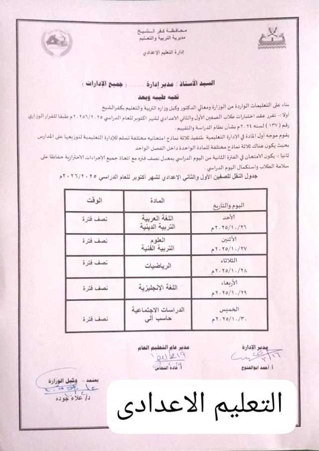 حيث أعلنت وزارة التربية والتعليم والتعليم الفني في خطاب رسمي أرسلته لمديريات التربية والتعليم ، أنه في ضوء ما جاء بالقرار الوزارى رقم (٢٣٤) بتاريخ ٢٠٢٥/٩/١٧ بتعديل نصوص وأحكام القرار الوزاري (۱۳۸) لسنة ۲۰۲٤ بشأن نظام الدراسة والتقييم لطلاب مرحلة الثانوي العام، يتعين على كافة المديريات والإدارات التعليمية والمدارس الالتزام بما يلي: