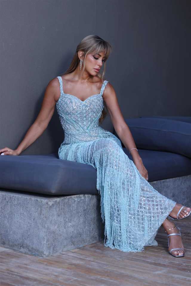 وظهرت ريم بفستان أزرق ثلجي مرصّع بالخرز والتطريزات البراقة مع تفاصيل من الشراريب اللامعة التي منحت الإطلالة حركة انسيابية مفعمة بالحيوية، في تصميم يجمع بين الفخامة والأنوثة الراقية. وتميز الفستان بقصته الضيقة التي أبرزت رشاقتها وأناقة قوامها، و لاقت جلسة التصوير تفاعلًا واسعًا من جمهورها ومتابعيها، الذين أثنوا على إطلالتها ووصفوها بأنها واحدة من أجمل إطلالات مهرجان الجونة السينمائى هذا العام.