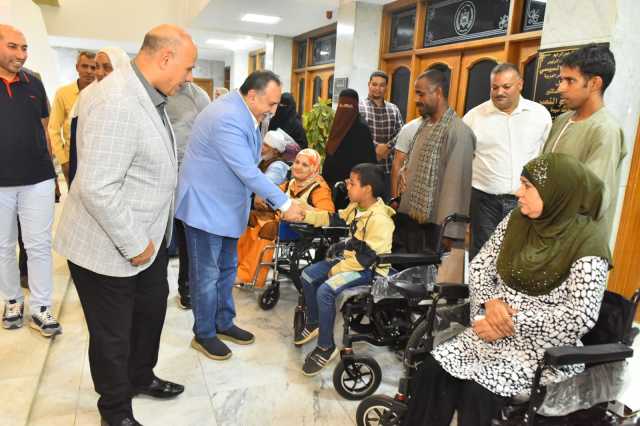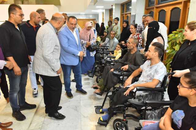 محافظ أسيوط يسلم كراسي كهربائية وماكينات خياطة لذوي الهمم والسيدات المعيلات