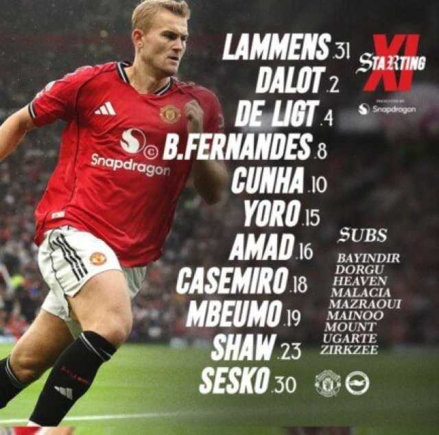 أعلن روبين أموريم المدير الفني لمانشستر يونايتد، عن التشكيل الرسمي للفريق وذلك لمواجهة برايتون في الجولة التاسعة من الدوري الإنجليزي.