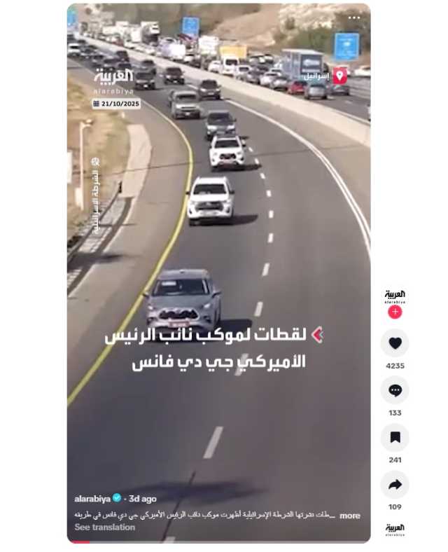 ونشرت وسائل إعلام عربية لقطات مصورة لموكب دي فانس، نقلا عن وسائل إعلام إسرائيلية، قائلة إنها لموكب "دى فانس في طريقه إلى قاعدة أمريكية في جنوب إسرائيل".
