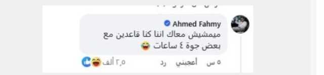 وعلق الفنان أحمد فهمي على الفيديو المنتشر له وللفنان هشام ماجد وقال: «ميمشيش معاك اننا كنا قاعدين مع بعض جوا 4 ساعات».