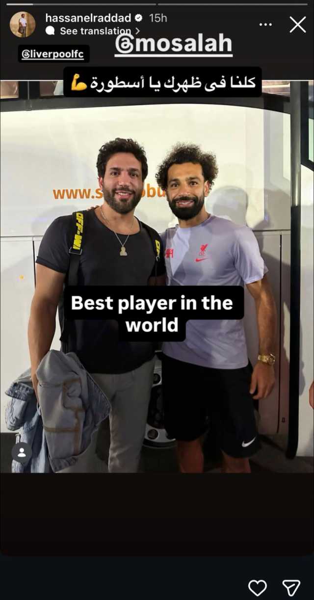 ونشر الرداد صورة تجمعه بصلاح عبر حسابه الرسمى على انستجرام، وكتب: “كل الدعم لك يا صلاح، صنعت تاريخ عالمى لا يستطيع أحد إنكاره وعدت بالبطولات لليفربول”.