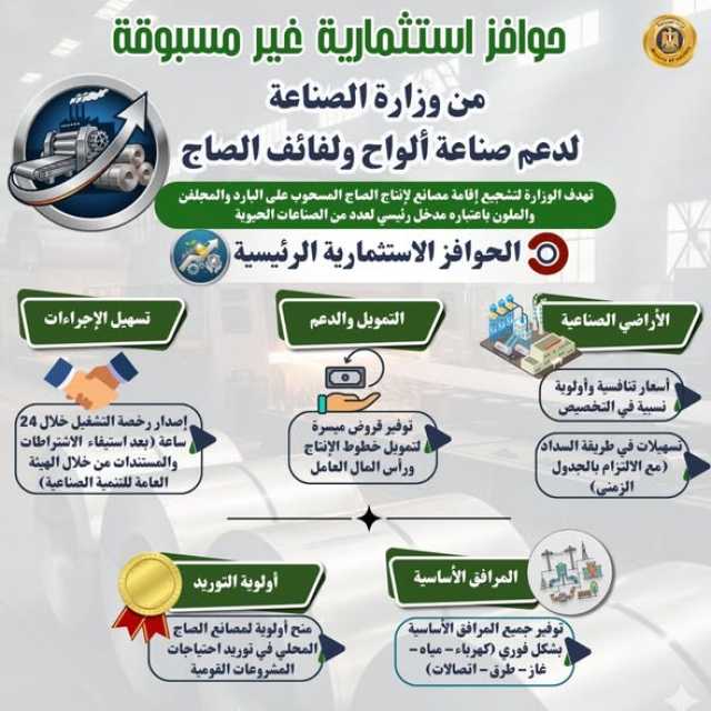 كلمات دلالية: صناعة ألواح الصناعة الحوافز الاستثمارية الجديدة الحوافز الاستثمارية