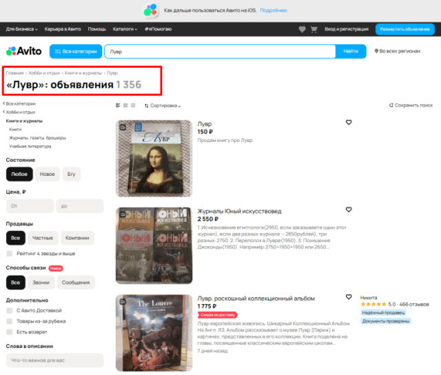 الحقيقةوللتحقق من الرواية المزعومة، أجرى فريق "الجزيرة تحقق" بحثا باستخدام كلمات مفتاحية متعددة مرتبطة بالمتحف باللغة الروسية على الموقع، إذ أظهرت منصة الإعلانات الشهيرة آلاف النتائج في كل مرة، غير أن الإعلان المتداول لم يظهر ضمنها، مما يرجح أنه حذف سريعا من المنصة.