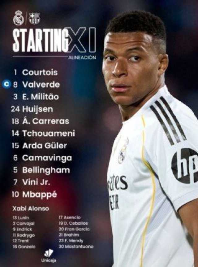 مبابي يقود تشكيل ريال مدريد الرسمي أمام برشلونة بقمة الدوري الإسباني