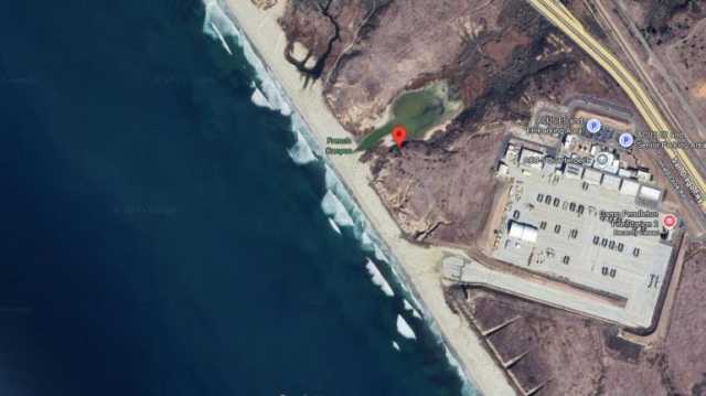 لتحديد مكان التصوير بدقة، قام فريق التحقق بعملية مطابقة بصرية باستخدام صور الأقمار الصناعية، وتبين أن المشهد تم تصويره من على شاطئ معسكر "بندلتون" بولاية كاليفورنيا.