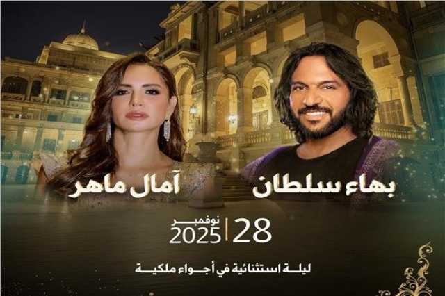 ويقام حفل النجمين آمال ماهر وبهاء سلطان في قصر القبة بالقاهرة، يوم 28 نوفمبر المقبل، ويقدم النجمين مجموعة من أشهر أغانيهما القديمة والجديدة التي يحبها الجمهور ويتفاعل معها.