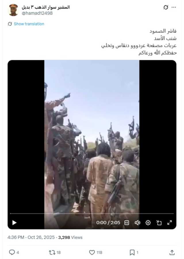 دبي، الإمارات العربية المتحدة (CNN)-- نشرت حسابات وصفحات مقطع فيديو في مواقع التواصل الاجتماعي، مُدعية أنه يرتبط باستعادة الجيش السوداني السيطرة على مدينة الفاشر غربي البلاد من قوات الدعم السريع شبه العسكرية.
