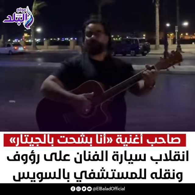 تعرض الفنان على رؤوف، صاحب أغنية «أنا بشحت بالجيتار»، لحادث مفاجئ، حيث انقلبت سيارته على الطريق.
