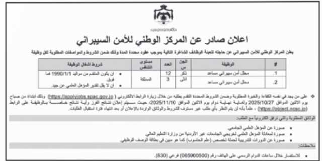 كلمات دلالية: سواليف المركز الوطني للأمن السيبراني وظائف شاغرة