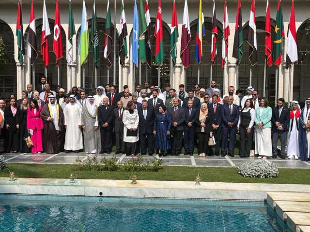 وقال السيد محمود الشريف نقيب الأشراف في كلمته:"يشرفني أن أقف بينكم اليوم في هذا الصرح العريق، جامعة الدول العربية، التي تمثل رمزاً لوحدتنا، للمشاركة في المؤتمر الذي يحمل شعار:"معاً نرفع التحديات”.