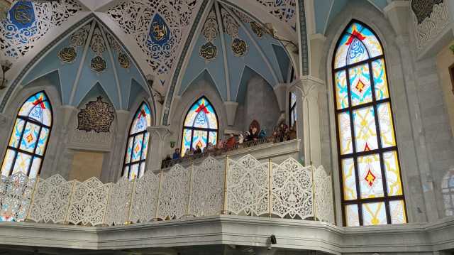 عيون تعكس الانبهاربعيون تعكس الانبهار يقف "محمد"، سائح من دولة السعودية، ببهو مسجد "قول شريف" ليُمتّع أنظارَه بروعة المسجد من زخارفَ وزجاجِ شرفاتِ المسجدِ الملونةِ التي تعكس إضاءاتٍ خلابة في وضوح النهار، في رحلة يصفها بالأروع في حياته.