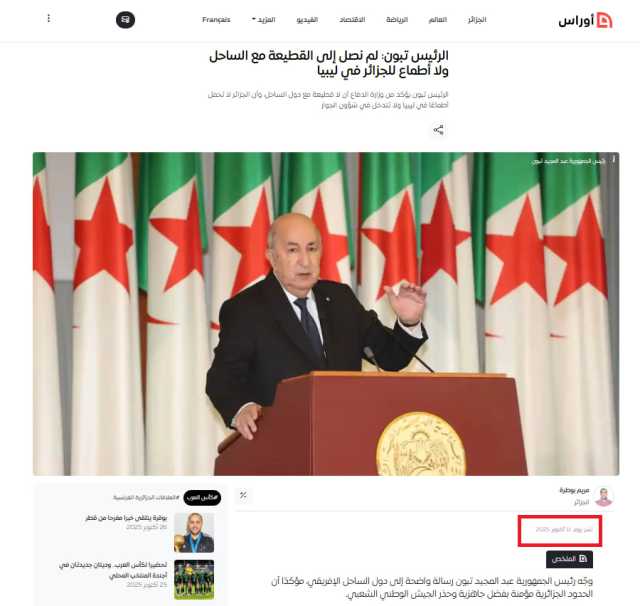 جمع الفيديو مئات الآلاف من المشاهدات والتفاعلات في مختلف المنصات الاجتماعية، مدفوعًا بوصف مُضلل: "الهزيمة الباردة" تدفع تبون لتغيير لهجته.