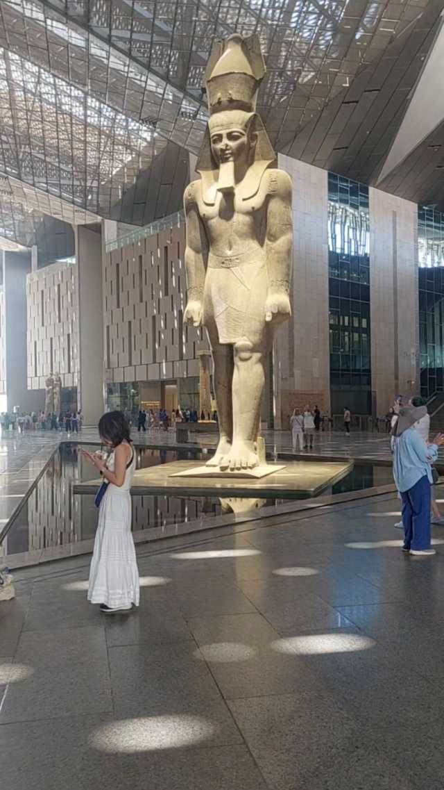 ويقع المتحف المصري الكبير على مساحة 490 ألف متر مربع،يضم أكثر من 57 ألف قطعة أثرية،ويوجد به 12 قاعة عرض رئيسية ،بالإضافة إلى متحف الطفل ومتحف الملك خوفو .