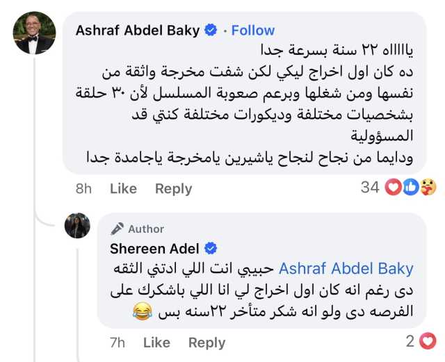 كلمات دلالية: المخرجة شيرين عادل فيسبوك أشرف عبد الباقي السادة الأفاضل أشرف عبد