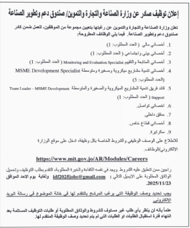 أعلنت وزارة الصناعة والتجارة عن عدد من #الوظائف_الشاغرة.