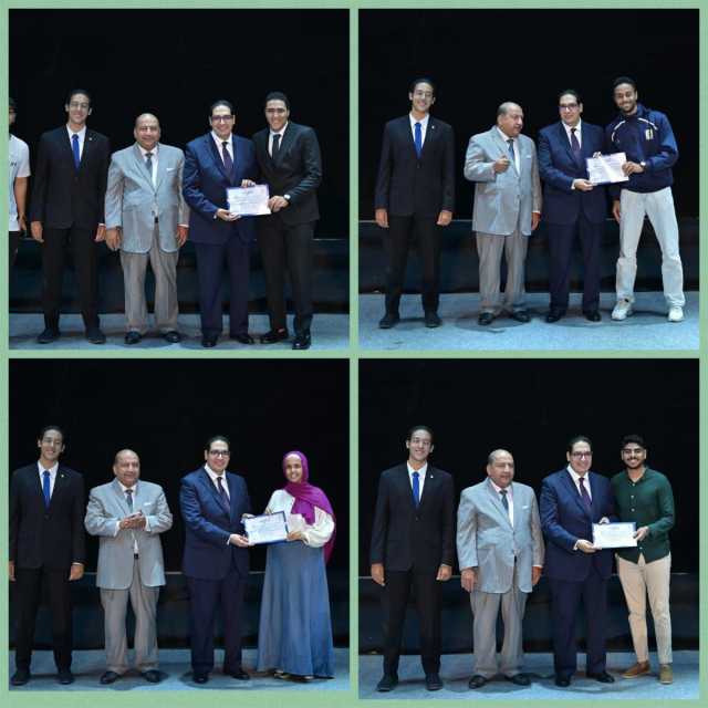 كرَّم الدكتور محمد سامي عبدالصادق، رئيس جامعة القاهرة، عددًا من الطلاب المتميزين في مختلف الأنشطة الطلابية، تقديرًا لتفوقهم ومشاركتهم الفاعلة في مجالات الأنشطة الثقافية والفنية والرياضية والعلمية والاجتماعية التي أقيمت داخل الجامعة أو خارجها مثل دورة الجامعات 52، ومسابقة إبداع، والمسابقات القمية وغيرها، إلى جانب تكريم الطلاب المشاركين في البرنامج التدريبي، خلال العام الجامعي 2025-2024.