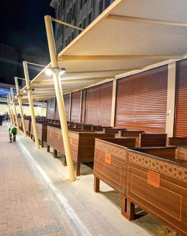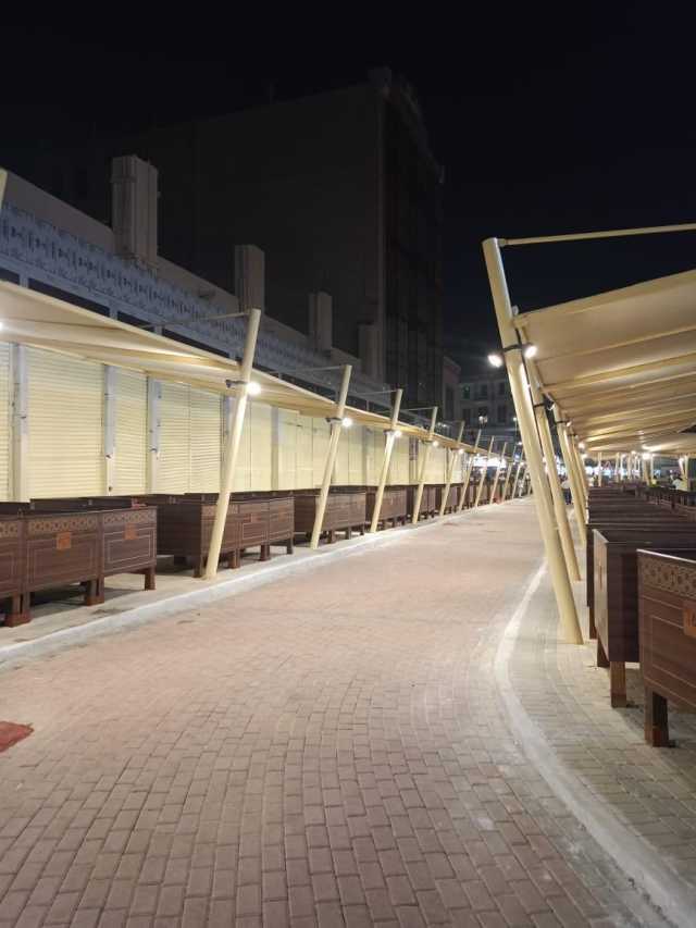 كما تم الانتهاء من تنفيذ شبكات المرافق بنسبة ١٠٠٪، وتشمل الصرف الصحي، والمياه، والكهرباء، والاتصالات، إلى جانب تنفيذ أعمال التطوير بنسبة ١٠٠٪، والتي تضمنت رصف الأرضيات بالإنترلوك، وتركيب مظلات مقاومة للحريق تسمح بالإضاءة الطبيعية، وإضاءة حديثة تبرز الطابع الجمالي للمكان، وتصميم واجهات ويافطات المحلات بخامات عالية الجودة مثل: الكلادينج والسيمنت بورد، ودهان الأبواب، وتوريد الطاولات المخصصة للباعة، وتركيب منظومة متكاملة لكاميرات المراقبة؛ لتعزيز الأمن والسلامة داخل السوق.