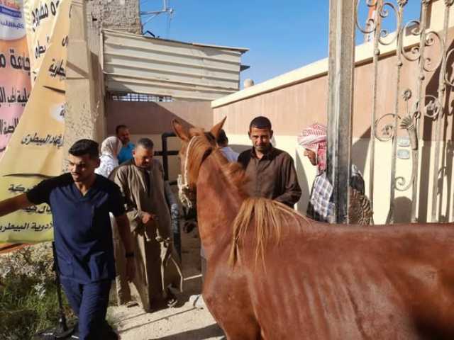 حيث تم بمشاركة أساتذة وباحثى كلية الطب البيطري وخبراء واطباء مديرية الطب البيطري تنظيم قافلة توعوية للمربين ولاصحاب المزارع الحيوانية والداجنة وتم خلالها التوعية بأهمية التحصينات الدورية. والتغذية السليمة للحيوانات والدواجن و أهمية الفحص البيطري عند ظهور أي أعراض اشتباه بمرض خاصة التوعية عن مرض الحمى القلاعية واھمية التحصين للحفاظ على الثروة الحيوانية وتم تجريع 1160 رأس أغنام و ماعز و 390 رأس تجريع ابقار و جاموس وكشف على 950 حالة باطنة ،و 8 حالات التهاب ضرع و جراحة ،و 15 حالة التهاب جلد ، و8 حالات عرج ،و 28 حالة غسيل رحم، و 15 حالة تأخر الحمل ، و 160 حالة تجريع خيول و 195 حالة طفيليات خارجيه ، و 80 حالة رش للقراد والحشرات الخارجية، و 400 حالة امراض دواجن ، و 8 حالات باطنة فى الخيول، و 12 حالة تلبك معوى و سوء هضم، و 64 حالة علاج للديدان الكبدية و ديدان الكرش واحد حالة غرغرينا فى الضرع ، و3 حالات خراج فى البقر.