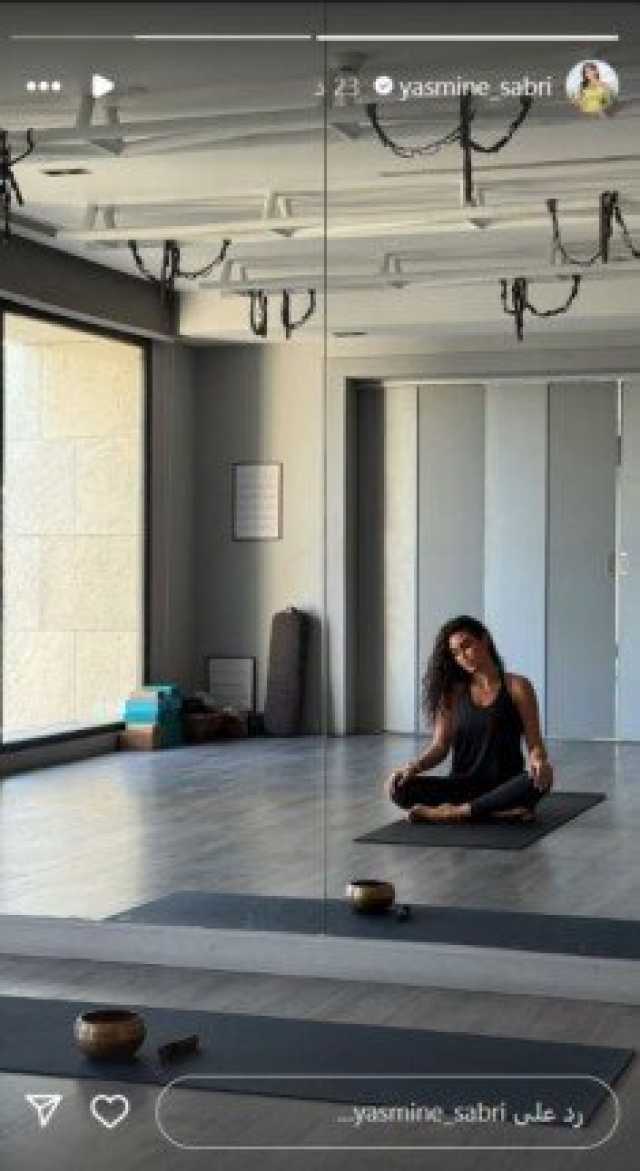 وظهرت ياسمين صبري ، وهي تؤدي رياضة اليوجا بملابس رياضية،مما حازت الصورة علي اعجاب متابعيها.