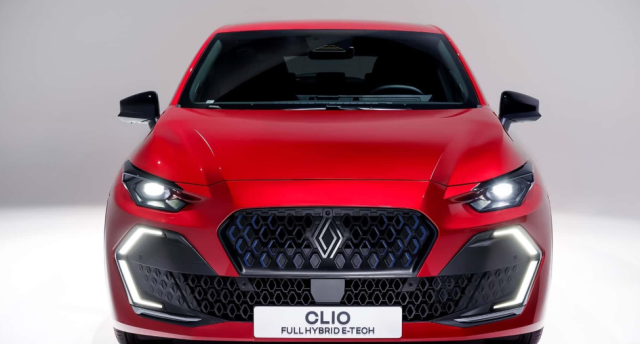 الجيل الجديد من رينو كليو يأتي بمظهر خارجي أكثر جرأة مع خطوط حادة ولمسات ديناميكية، أبرزها مصابيح LED أمامية على شكل حرف C وشبك أمامي مزخرف بتصميم هندسي مميز، بينما يمنح السقف المائل والجناح الخلفي السيارة طابع رياضي.