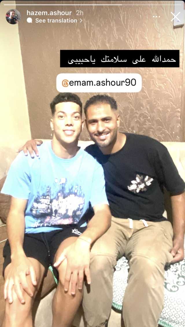 و نشر حازم عاشور ، صورة برفقة شقيقة إمام ، عبر إنستجرام وعلق كاتبا: "حمدا لله على سلامتك يا حبيبي".