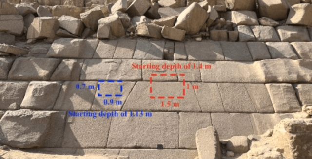 قبل أكثر من قرن ونصف قرن، وأثناء حملاته الاستكشافية، لاحظ المستكشف البريطاني هوارد فايس شيئا غريبا على الواجهة الشرقية لهرم منكاورع (منقرع)، أصغر أهرامات الجيزة.