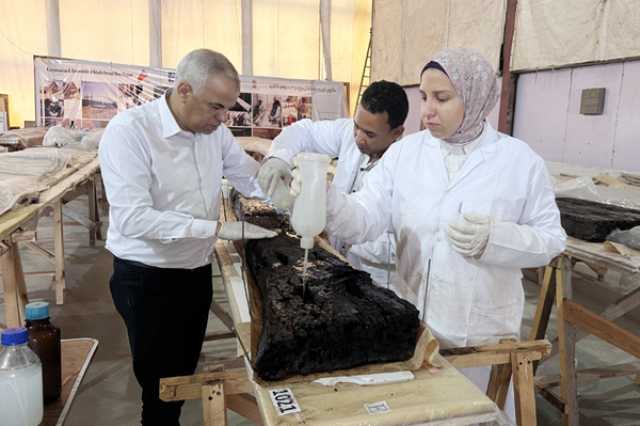 وقال زيدان إن فريقا مصريا يابانيا مشتركا بدأ العمل بعد ذلك بوقت قصير، حيث قام بإزالة 1698 قطعة خشبية بعناية من 13 طبقة مكدسة داخل الحفرة، مضيفا أنه تم تطبيق معالجات الحفظ الأولية في الموقع قبل نقل القطع إلى معامل الترميم بالمتحف المصري الكبير حيث اكتملت عملية الحفظ الطويلة والدقيقة، وستستمر عملية إعادة البناء.