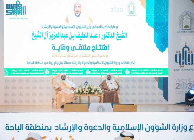دشَّن معالي وزير الشؤون الإسلامية والدعوة والإرشاد الشيخ الدكتور عبداللطيف بن عبدالعزيز آل الشيخ، أمس، ملتقى “وقاية” للأمن الفكري، الذي ينظمه وينفذه فرع الوزارة بمنطقة الباحة، وذلك في قاعة الأمير حسام بن سعود بجامعة الباحة، بحضور معالي مدير الجامعة الدكتور عبدالله بن يحيى الحسين، وعددٍ من منسوبي الوزارة .