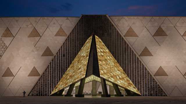 وأشار إلى أن التصميم تمت مراعاه فيه الربط البصري والمكاني بين مبنى المتحف وموقع الأهرامات، ليحظى الزائر بتجربة حضارية متكاملة تجمع بين عظمة الماضي وروعة الحاضر.