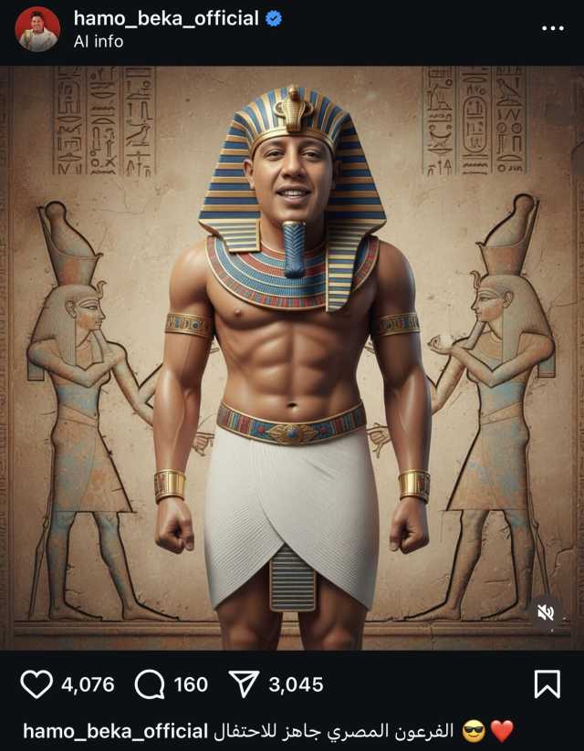 ونشر حمو بيكا صورة له بملابس فرعونية تم إعدادها من قبل الذكاء الاصطناعي، معلقا عليها قائلًا: “الفرعون المصري جاهز للاحتفال ”.