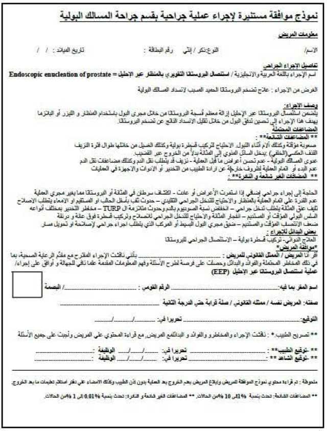 ننشر نموذج الموافقة المستنيرة لعمليات جراحة المسالك البولية