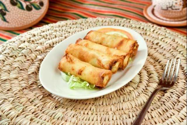 حمي الزيت في قدر عميق، وحمري الرقائق المحشوة والملفوفة وقدميها ساخنة.