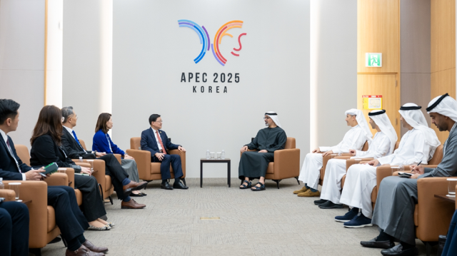 حضر هذا اللقاء معالي خلدون خليفة المبارك، رئيس جهاز الشؤون التنفيذية؛ ومعالي الدكتور ثاني بن أحمد الزيودي، وزير التجارة الخارجية؛ ومعالي سعيد بن مبارك الهاجري، وزير دولة؛ ومعالي سيف سعيد غباش، الأمين العام للمجلس التنفيذي لإمارة أبوظبي رئيس مكتب ولي العهد في ديوان ولي عهد أبوظبي؛ ومعالي مريم عيد المهيري، رئيس مكتب أبوظبي الإعلامي، مستشار العلاقات الاستراتيجية في ديوان ولي العهد؛ وسعادة عبدالله سيف النعيمي، سفير الدولة لدى جمهورية كوريا.