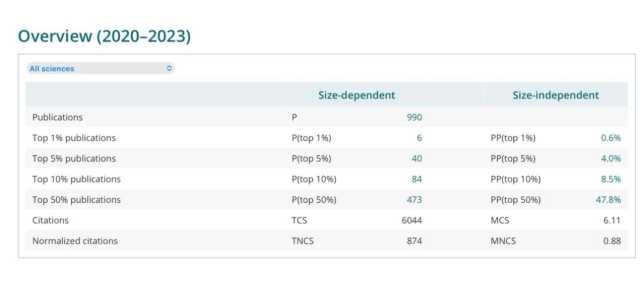 ومعدلات التعاون البحثي الدولي، ونسبة الأبحاث المنشورة بنظام الوصول الحر (Open Access)، بالإضافة إلى مؤشرات تتعلق بتنوع الباحثين وتوازن بيئة البحث العلمي داخل الجامعة.