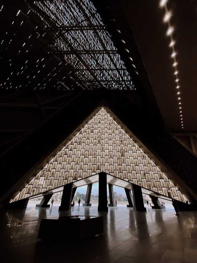 - يقف المتحف المصري الكبير جاهزًا ليستقبل زواره من كل أنحاء العالم، واجهة زجاجية ضخمة تطل على الأهرامات، وقاعات عرض مجهزة بأحدث تقنيات الإضاءة والحفظ والعرض المتحفي.