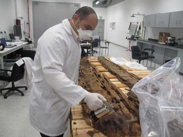 وبعد أشهر من العمل الدقيق داخل المعامل، تم استقرار حالة الأخشاب وإعادة هيكلتها جزئيًا بما يسمح بعرضها في بيئة آمنة.