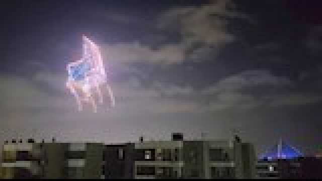 تجرى الآن "بروفات" مكثفة استعدادا لحفل الافتتاح، حيث قناع توت عنخ آمون يضئ سماء الأهرامات.