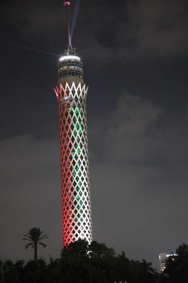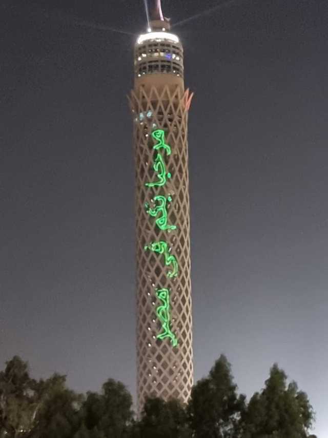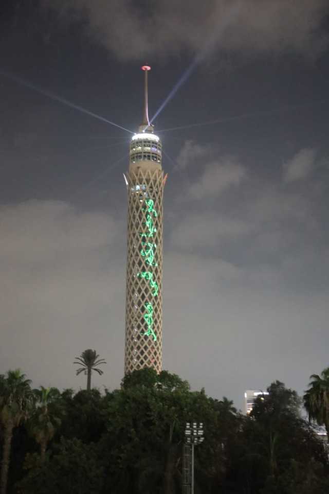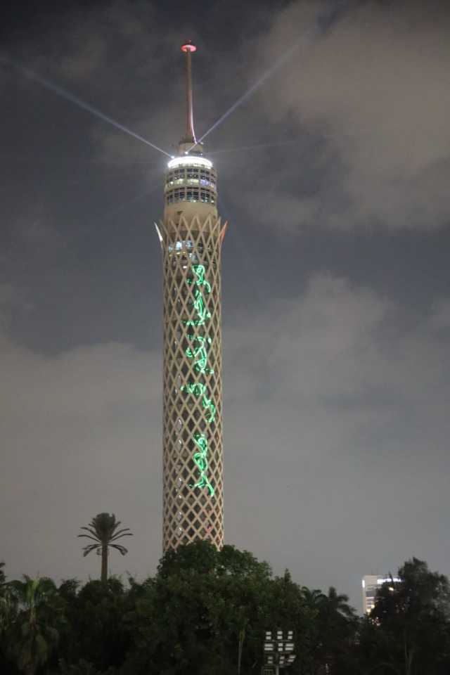إنارة برج القاهرة بعبارتي مرحبا بكم في مصر وWelcome to Egypt