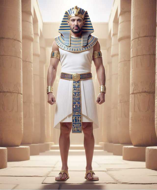 وأشار إلى أنه استخدم تقنيات الذكاء الاصطناعى المتقدمة لتوليد الصور بعد دراسة دقيقة لتفاصيل الملامح الفرعونية، من حيث الملابس، والإكسسوارات، وألوان الذهب والنقوش التى تميز الجداريات المصرية القديمة.