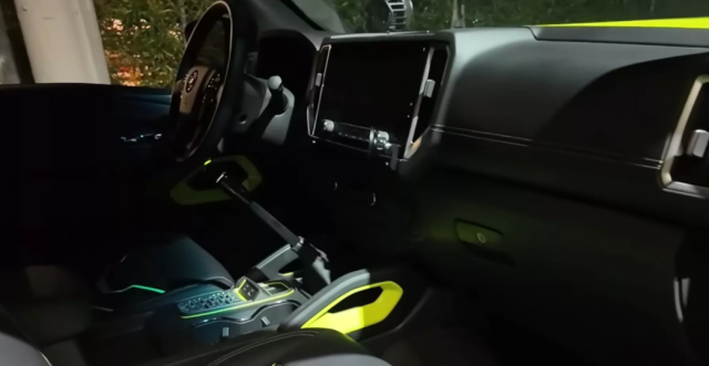 الهيكل مزود بعجلات نيسمو مقاس 17 بوصة مطلية بالبرونز، ونظام تعليق مرفوع لدعم الطرق الوعرة والصخور والمناطق الرملية، مع ، إطارات هانكوك داينابرو بقياس 33 بوصة، مصابيح ناحية السقف لتعزيز الأداء في الليل أو أثناء الظروف الجوية الصعبة، كما أضيف شريط إضاءة LED أمامي وخلفي.