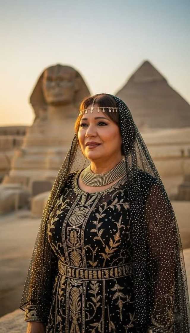 نشرت الفنانة عايدة رياض عبر صفحتها الرسمية على فيسبوك صورًا لها مرتدية الزي الفرعوني، تم تعديلها باستخدام تقنيات الذكاء الاصطناعي، تعبيرًا عن فخرها بتاريخ مصر وحضارتها العريقة.