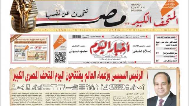 أول مانشيت بالهيروغليفية .. عدد خاص لصحيفة أخبار اليوم بمناسبة افتتاح المتحف الكبير