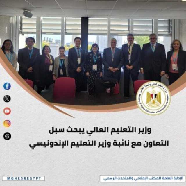 والتقى الدكتور أيمن عاشور بالدكتورة ستيلا كريستي نائبة وزير التعليم الإندونيسي، حيث أبدت رغبتها في الاستفادة من تجربة مصر في «التعليم العابر للحدود» ورغبتها في التعاون مع وزارة التعليم العالي والبحث العلمي في مجالات بحثية مختلفة مرتبطة بتكنولوجيا الطاقة، والزراعة، والموارد الطبيعية الرئيسية مثل المعادن، وأشار الوزير إلى إمكانية زيادة التعاون بين الجانبين في مختلف المجالات ذات الاهتمام المشترك، مؤكدًا أهمية بناء قنوات تعاون متعددة وخاصة في مجالات البحث العلمي، والتشجيع على استقبال الهيئة المعاونة من الجامعات الإندونيسية لاستكمال الدراسات العليا بمصر.
